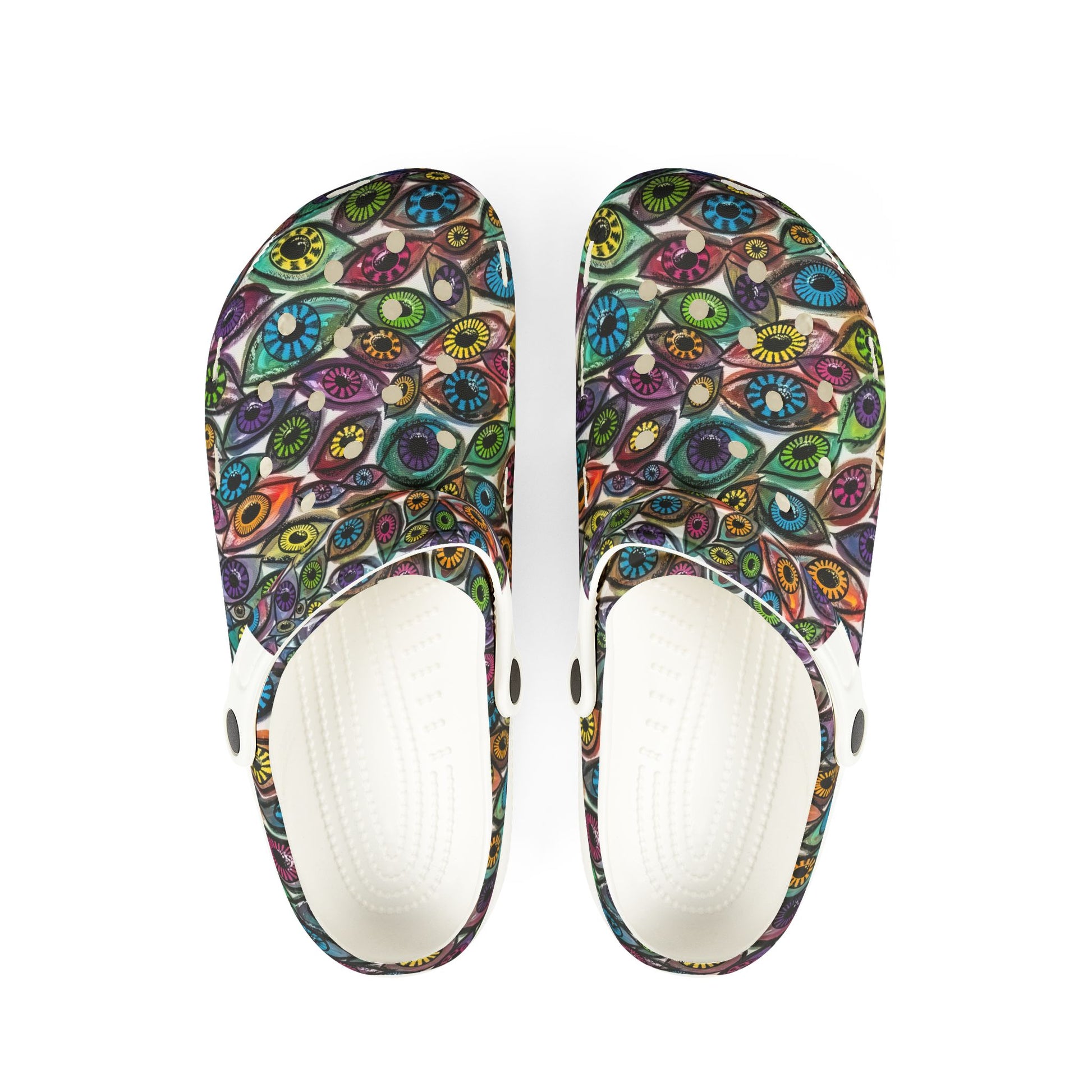 Eye See You Too Colorful AOP EVA Foam Shoes, Vibrant Slip-On Clogs for Garden, Home, Festivals, Casual Wear, Unique Footwear Gift