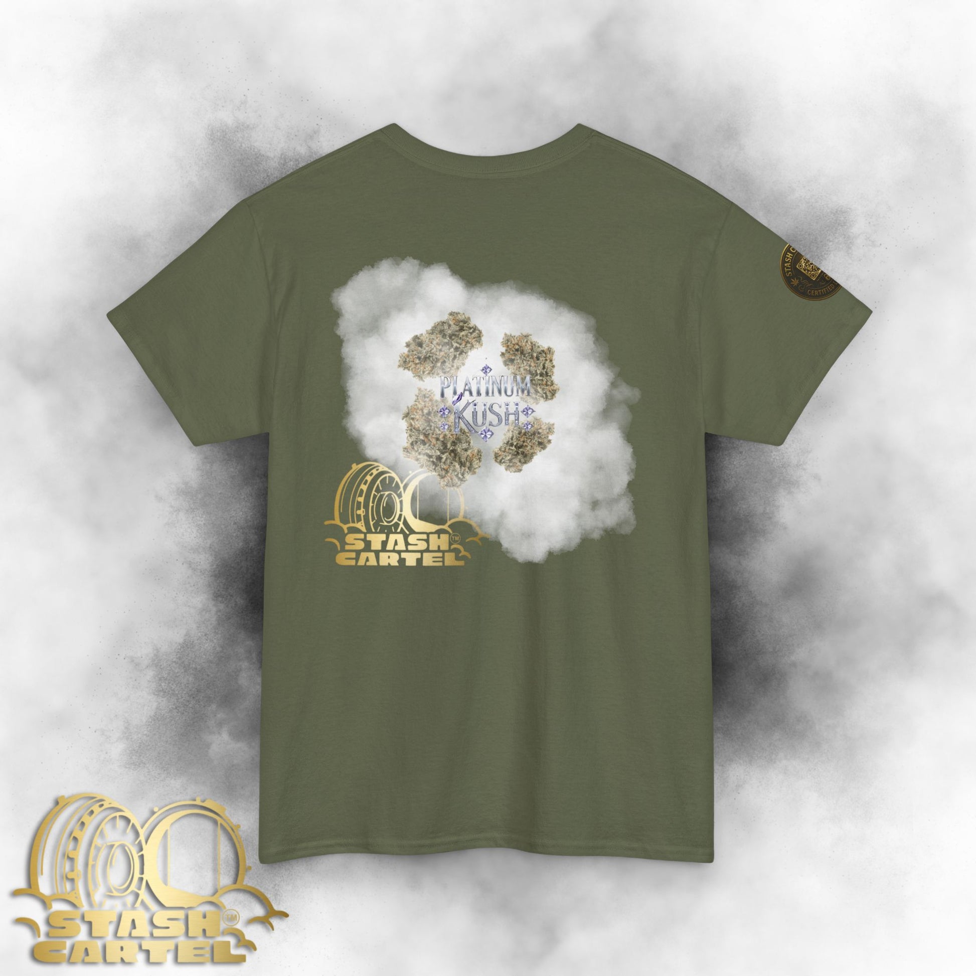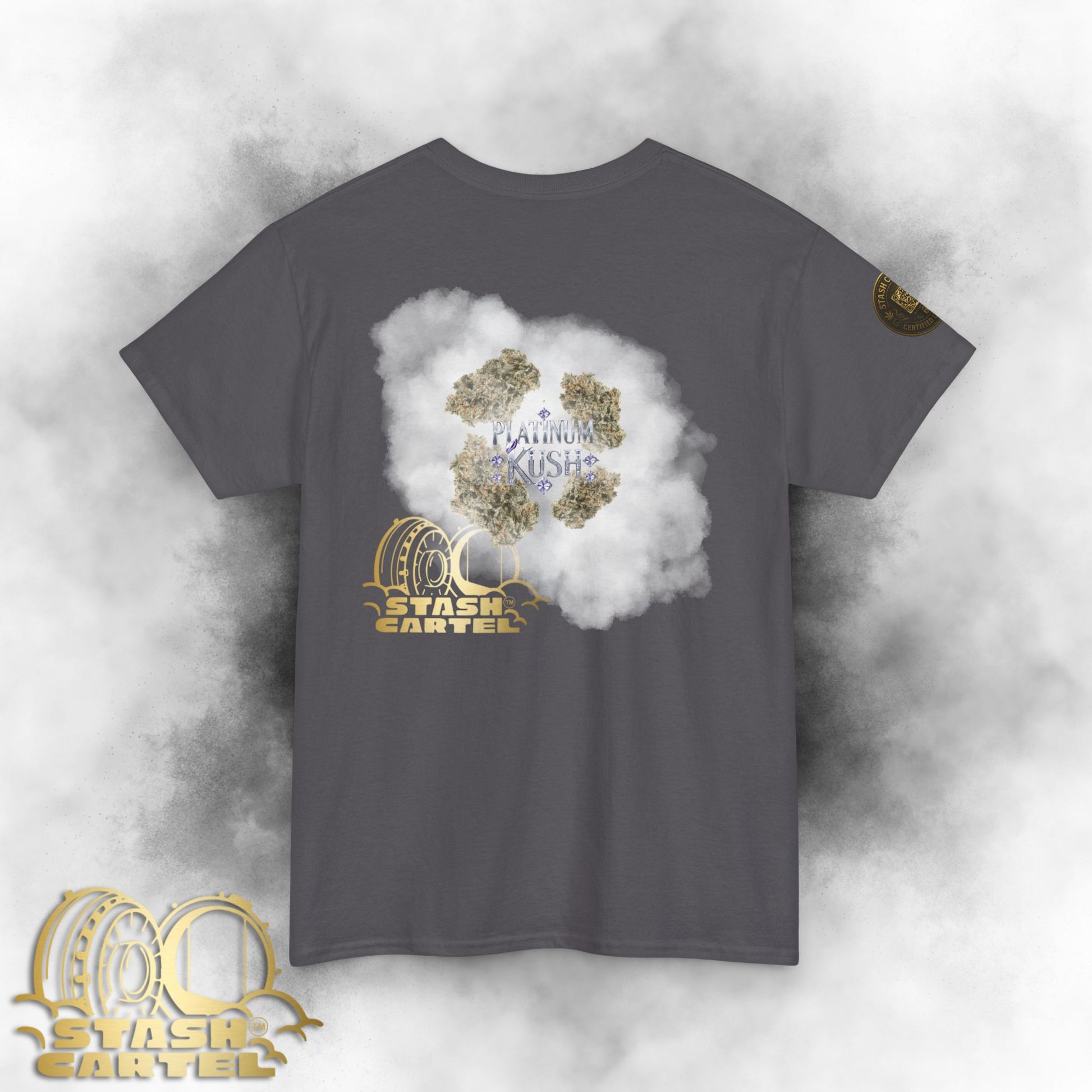 The Platinum Kush Tee showcases shimmering trichomes and a chill that hits deep. With its blend of earthy pine and sweet fruit, this rare indica is luxury in every puff—cool, calm, and coated in crystal.